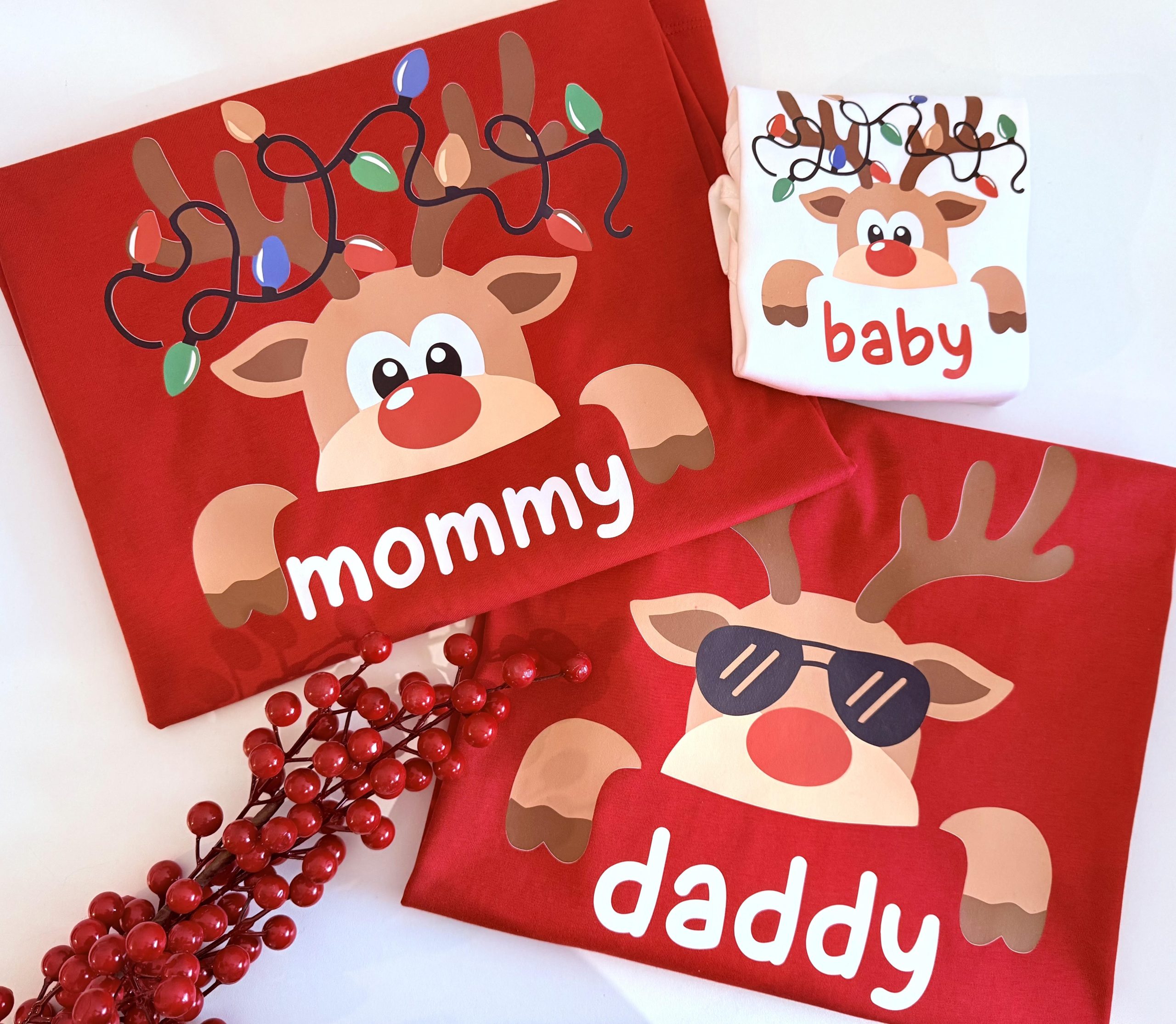 Božićni obiteljski komplet majica s bodijem – Mommy, Daddy & Baby