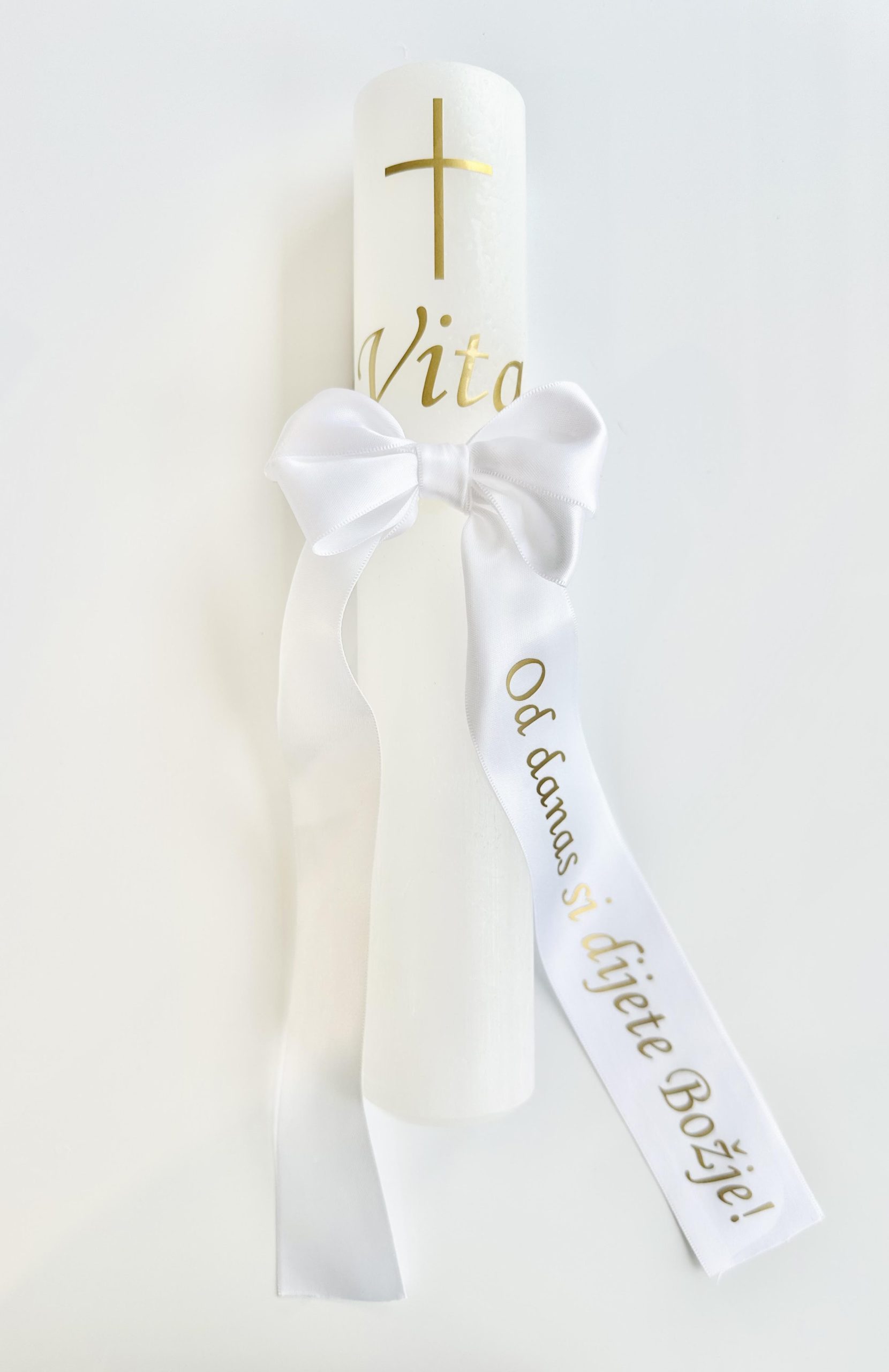 Personalizirana krsna svijeća sa bijelom mašnom