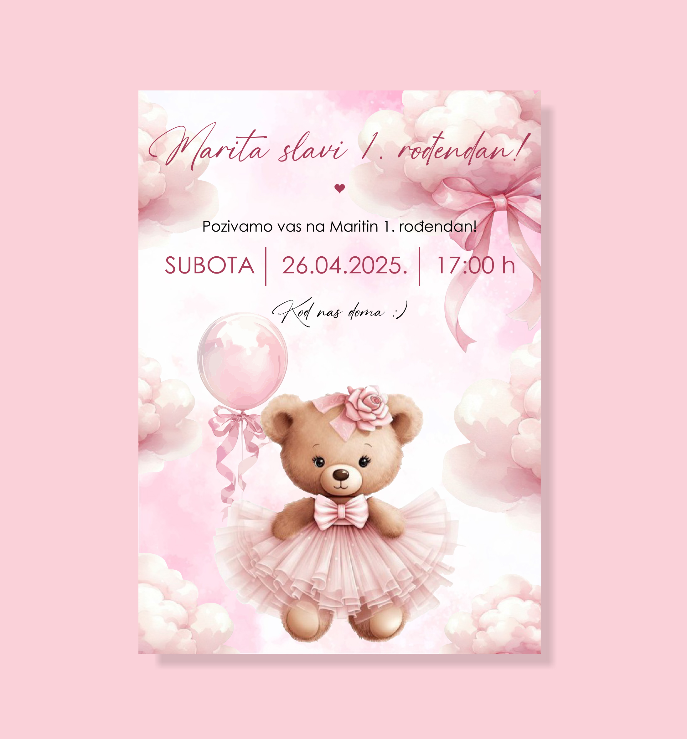 Pozivnice za dječji rođendan – Medo (djevojčice)