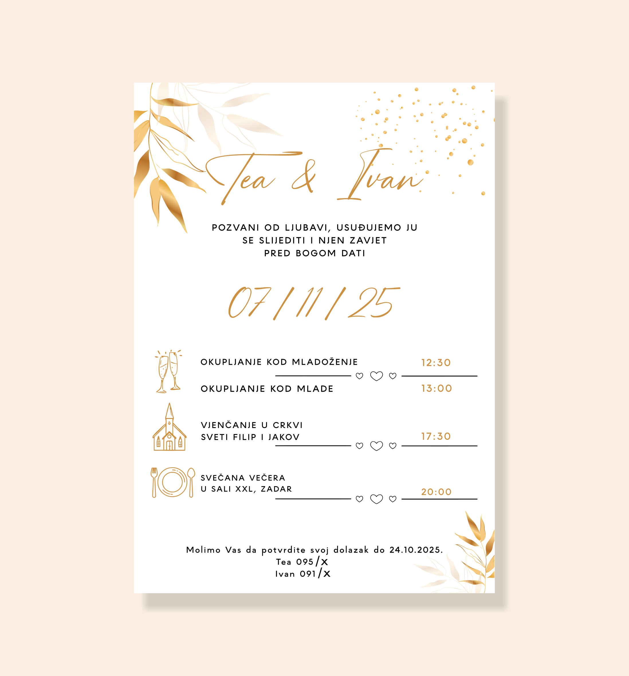 Pozivnice printamo na glatkom 300-gramskom papiru u dimenzijama 11 x 16 cm.