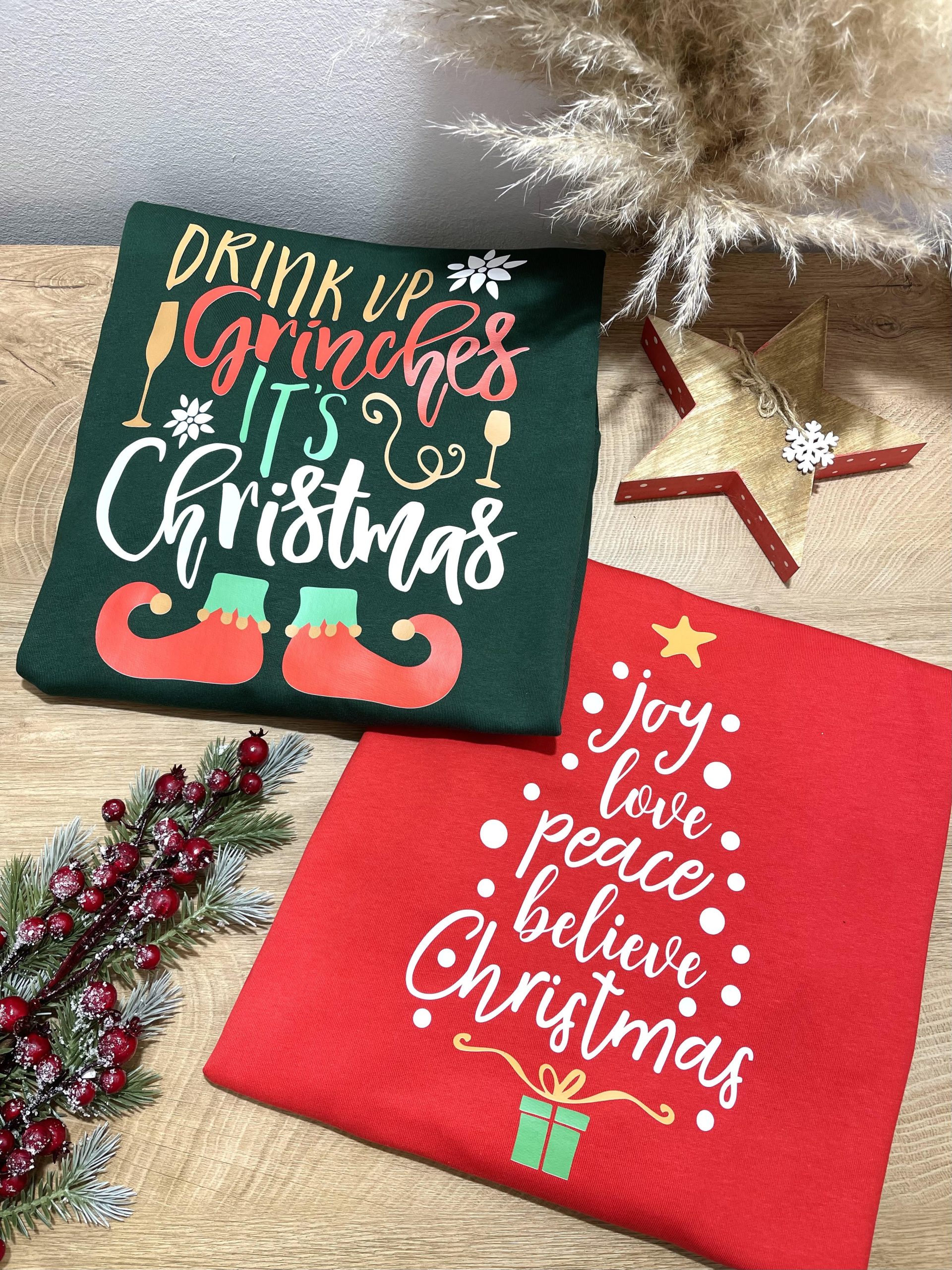 Sweatshirt – Drink up Grinches, it’s Christmas & Joy, love, peace, believe, Christmas